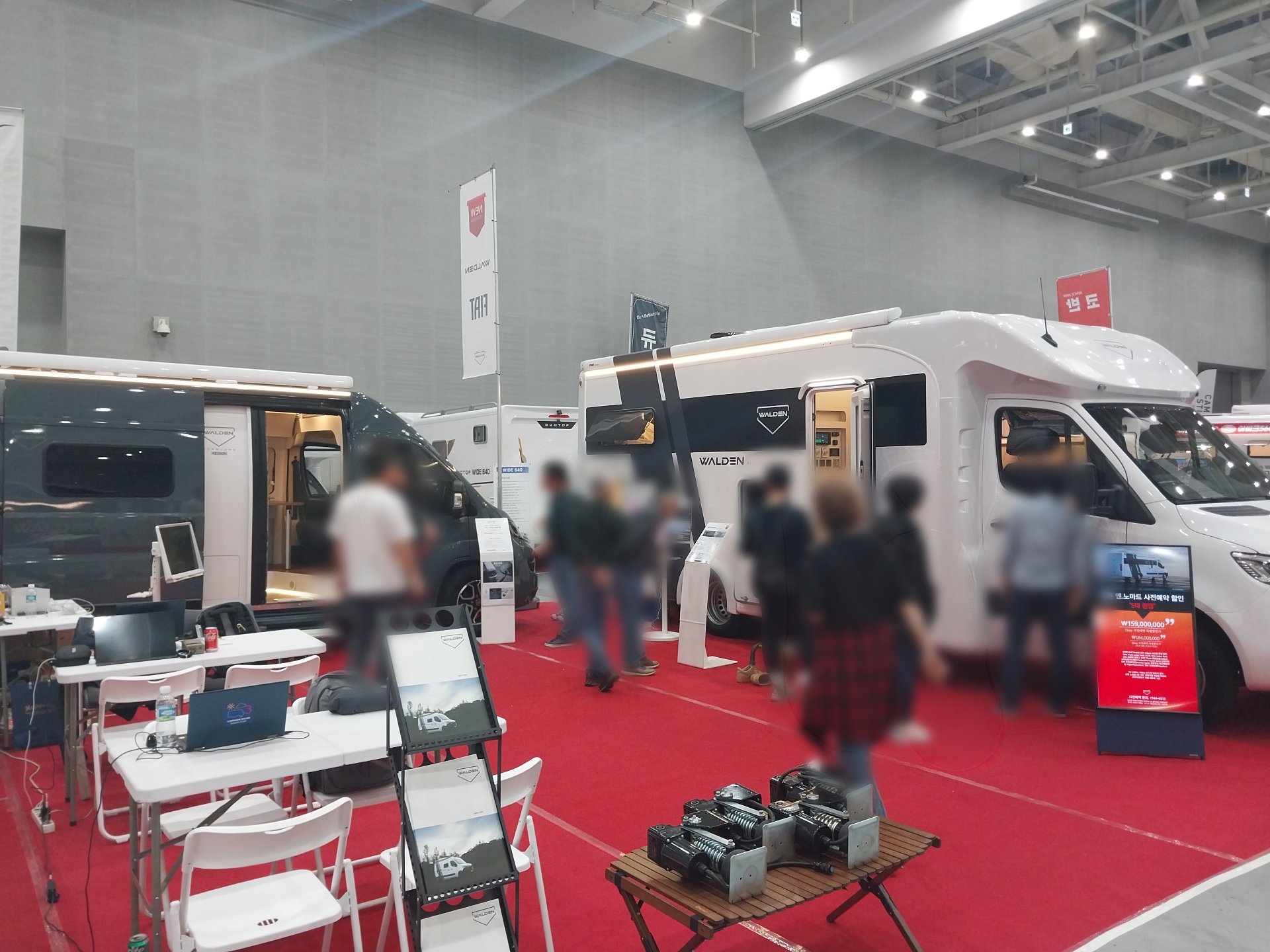 평일인데도 사람들이 꽤 많고 북적거렸습니다. 견적 상담도 가능하고 캠핑 용품들도 많이 전시가 되어 있으니 관심 있으시면 한 번 방문해보세요.